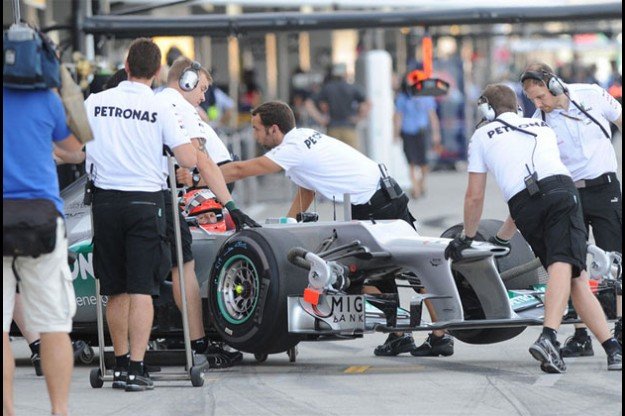 Tras la sorprendente noticia de la retirada del Káiser para la próxima temporada, el piloto alemán pasa por una etapa un tanto escabrosa tras el pasado gran premio: debido a la sanción impuesta por la FIA por embestir al piloto francés Vergne, Schumacher saldrá mañana en penúltima posición. Destaca también la gran actuación del piloto español Pedro de la Rosa, que ha conseguido colocar su HRT en vigésima posición con una vuelta rápida que evidencia las ganas de conseguir progresar en el que es el circuito favorito del barcelonés. Massa volvió a quedarse fuera de la Q3, la que se convierte en la décima vez que el piloto brasileño no consigue estar entre los diez primeros de la parrilla.