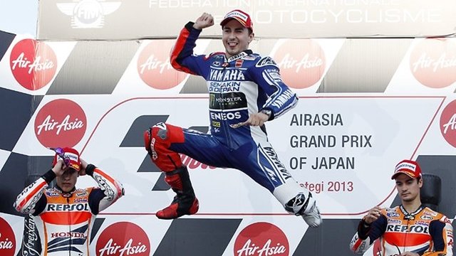 Jorge Lorenzo (Yamaha) salva su segunda 'bola de partido' en el Mundial de la categoría de MotoGP y se juega el título en una apasionante carrera final en el circuito valenciano de Cheste tras lograr la nueva victoria en el Gran Premio de Japón.
