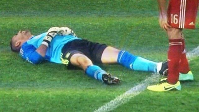 Tan solo dos minutos antes había entrado Koke por Andrés Iniesta en el sexto y último cambio permitido por FIFA en los amistosos. Fue Álvaro Arbeloa el encargado de sustituir al Valdés entre los palos.